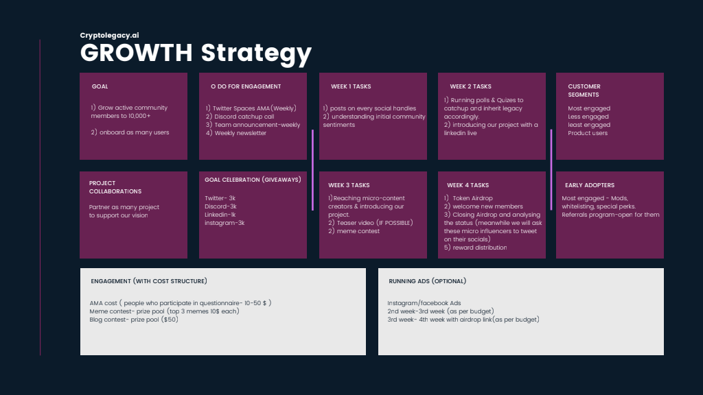 - Led Web3 community growth for Cryptolegacy, 1000+ users in 10 days